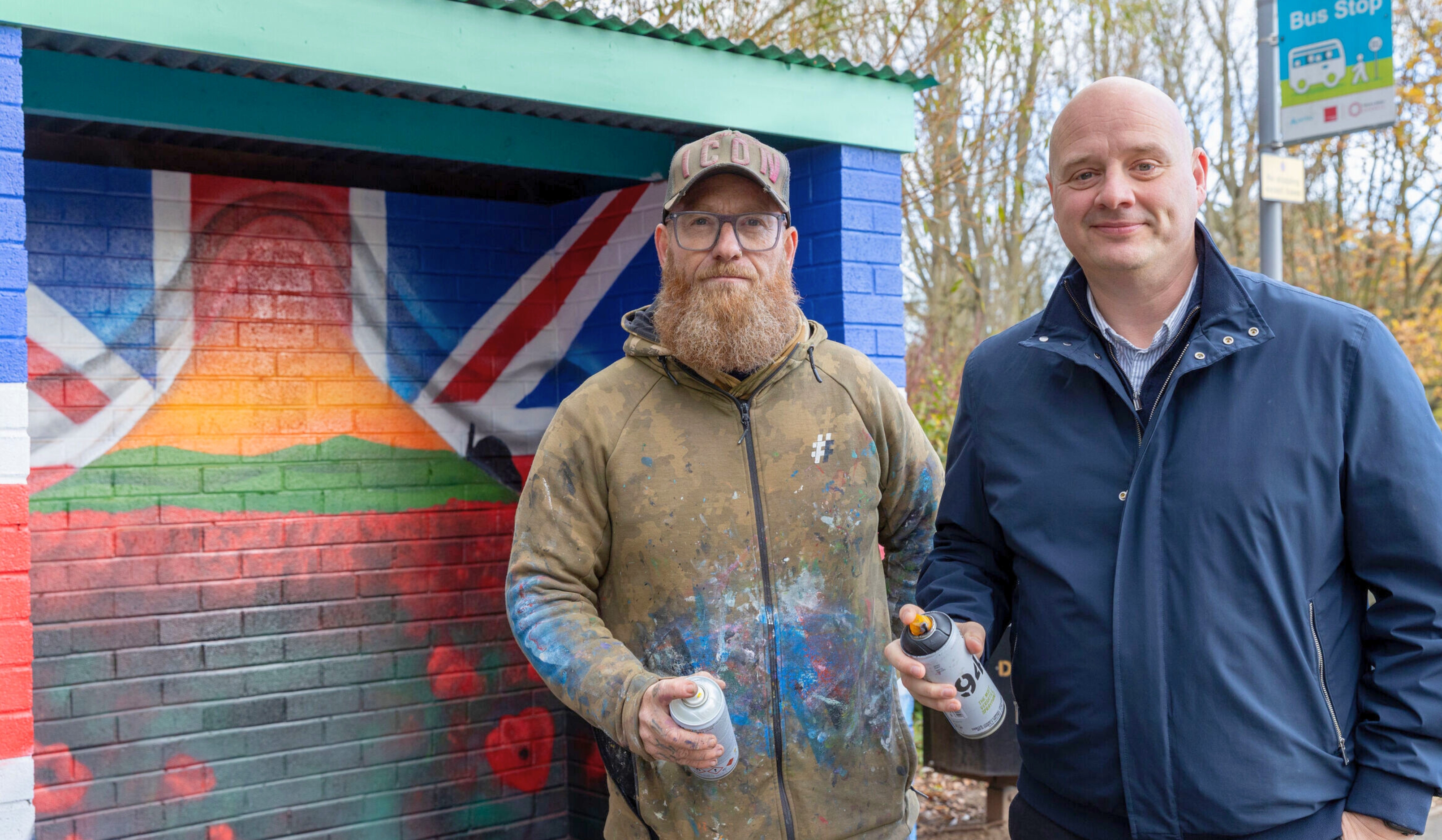 Council restores vandalised Remembrance bus stop mural